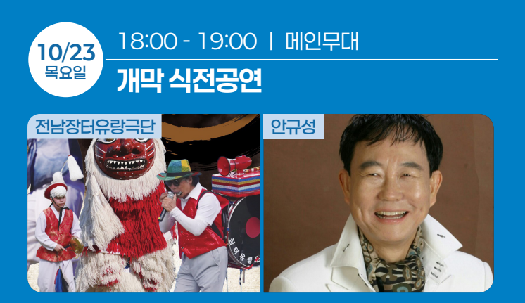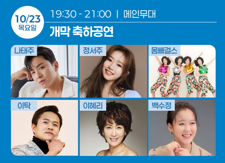 10.23 목요일 : 전남장터유랑극단, 안규성, 나태주, 정서주, 몸빼걸스. 이탁, 이혜리, 백수정