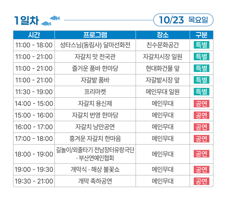 부산의 가을이 더욱 활기차지는 순간, 바로 ‘부산 자갈치 축제’가 열릴 때입니다.